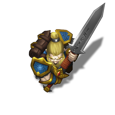 Guerreiro 5 (campeão). Anão do Escudo. Descendente do Clã Martelo Negro, talvez uma das últimas linhagens nobres de Shanatar do Alto, ele foi criado para retomar a glória e a Fortaleza Kuldelvon, conhecida também como o Anão Uivante. Ele está também atrás de amigos para esta empreitada, esbarrando nos Buscapedras em seu caminho.