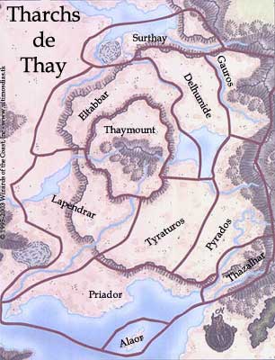 para o Mar da Lua através do enclave de Mulmaster.O tharch contém a capital de Thay, chamada Eltabbar . A cidade